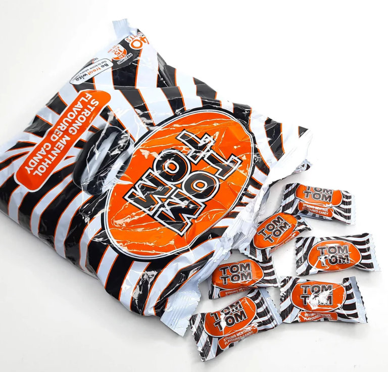 Tom Tom is a soothing menthol oval black and white sweet, with strong menthol flavor made by Cadbury. It's the number one Nigerian candy. It provides instant relief from congestion and throat soreness while refreshing your breath with minty-coolness.